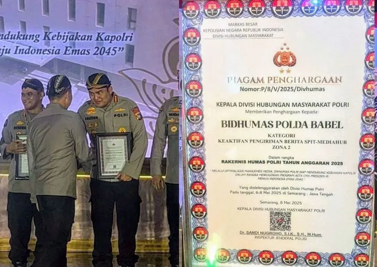 Penghargaan ini diterima langsung oleh Kabid Humas Polda Bangka Belitung Kombes Pol Fauzan Sukmawansyah. pada Rabu (07/05/25) di Gedung Serbaguna Akpol Semarang.