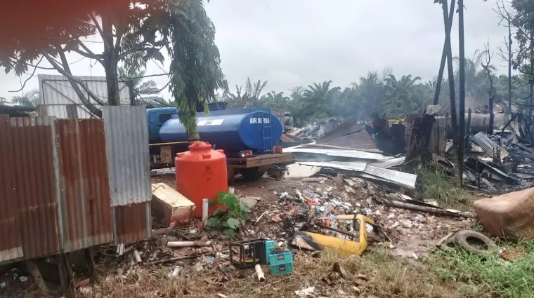 "Ditempat kejadian kebakaran terpantau beberapa peralatan yang diduga digunakan untuk aktivitas minyak Ilegal, seperti kelihatan tangki yang habis terbakar di lokasi,