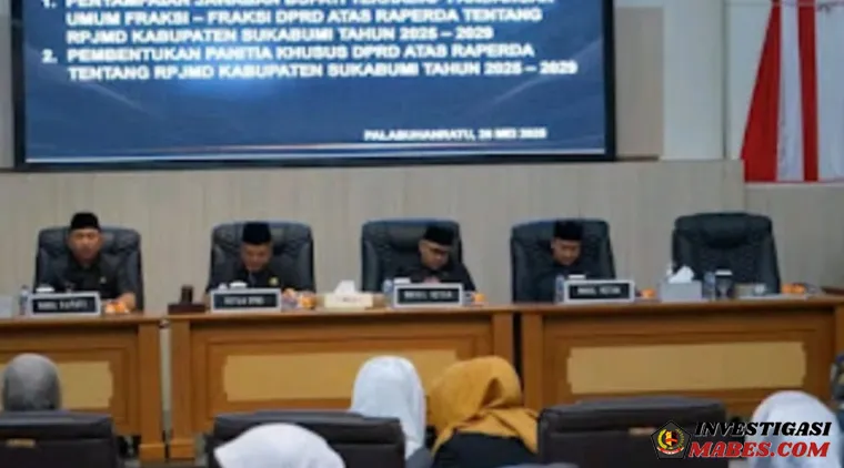 Investigasimabes.com l Sukabumi --Bupati Sukabumi H Asep Japar menyampaikan jawaban atas pandangan umum fraksi-fraksi DPRD terhadap Rancangan Peraturan Daerah (Raperda) tentang Rencana Pembangunan Jangka Menengah Daerah (RPJMD) 2025-2029 dalam rapat paripurna yang digelar di ruang sidang DPRD Kabupaten Sukabumi, Senin (26/5/2025).