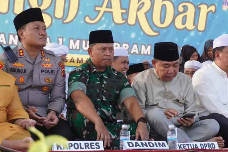 Acara akbar ini turut dihadiri Kapolres Tanjab Barat AKBP Agung Basuki, S.I.K., M.M., Bupati Tanjab Barat Drs. H. Anwar Sadat, M.Ag, serta jajaran Forkopimda lainnya. Kehadiran tokoh-tokoh penting daerah ini semakin memperkuat kesakralan momen Tahun Baru Islam yang dijadikan sebagai ajang mempererat ukhuwah Islamiyah dan menggugah semangat spiritual masyarakat.
