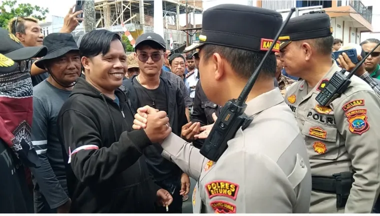 InvestigasiMabes.com | Bitung -Kapolres Bitung AKBP ALBERT ZAI.,SIK.,MH memimpin pengamanan aksi unjuk rasa Aliansi Bitung bergerak, yang berlangsung di kantor DPRD Kota Bitung Rabu 3/9/2025.