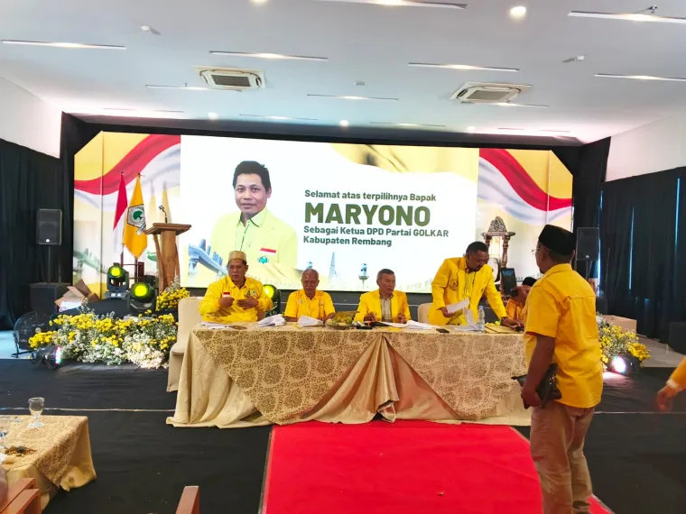 InvestigasiMabes.com | Rembang - Musyawarah Daerah (Musda) XI Partai Golkar Kabupaten Rembang resmi menetapkan Maryono sebagai Ketua Dewan Pimpinan Daerah (DPD) tingkat 2 Partai Golkar Rembang periode 2025–2030. Ia terpilih secara aklamasi setelah menjadi calon tunggal dalam pendaftaran.