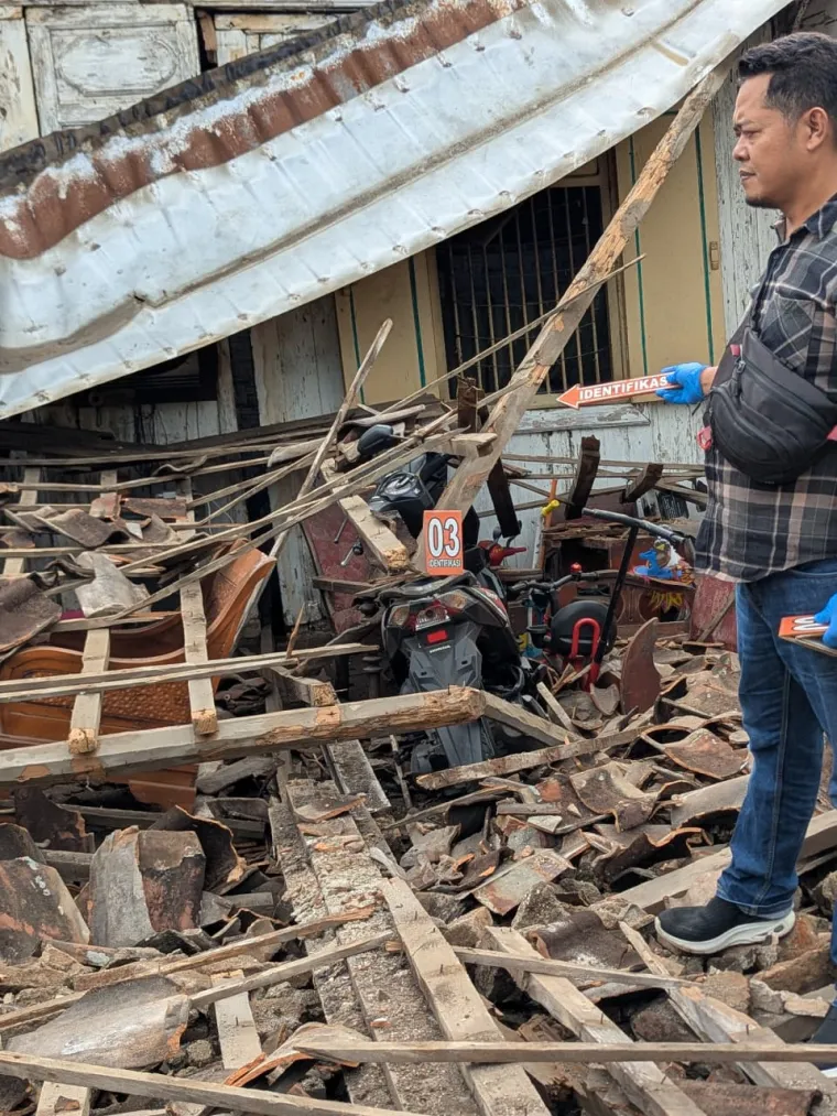 Tak hanya membantu evakuasi, petugas Polsek Wedarijaksa juga melakukan pendataan awal, olah TKP, dan mengamankan lokasi agar tidak menimbulkan risiko tambahan bagi warga sekitar. “Kami pastikan area sekitar aman dari kemungkinan reruntuhan susulan dan menenangkan warga agar tidak panik,” tambahnya.Dari hasil pendataan kepolisian, rumah milik korban mengalami rusak berat, termasuk dua unit sepeda motor, televisi tabung, dan sejumlah perabot rumah tangga. Total kerugian diperkirakan mencapai Rp64,6 juta. “Kami juga sudah berkoordinasi dengan pihak desa agar korban mendapat bantuan dari instansi terkait,” kata Kapolsek.