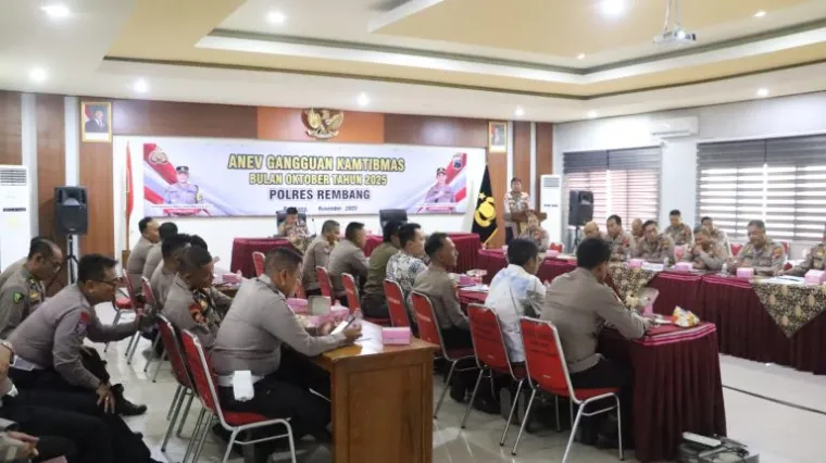 InvestigasiMabes.com | Rembang - Polres Rembang menggelar kegiatan Analisa dan Evaluasi (Anev) Gangguan Kamtibmas periode Bulan Oktober Tahun 2025 di Aula Sarja Arya Racana Mapolres Rembang, Jum’at (14/11/2025) siang.