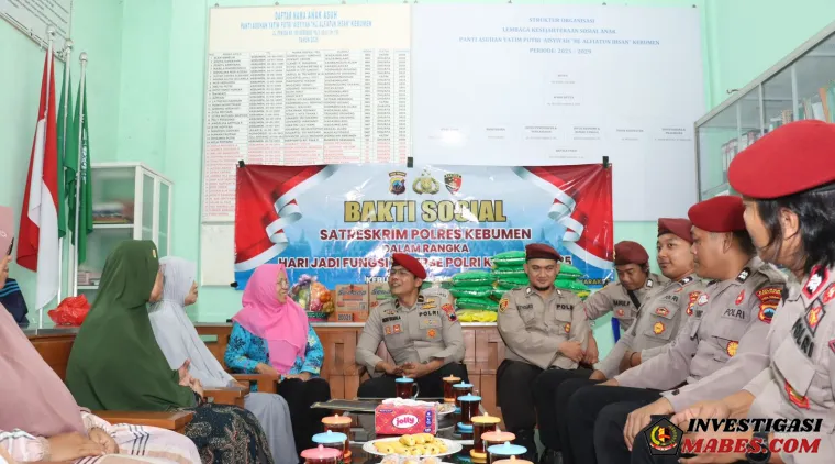 InvestigasiMabes.com l Kebumen - Satreskrim Polres Kebumen menggelar bakti sosial di Panti Asuhan Yatim Putri (PAY) ’Aisyiyah Kebumen, Jalan Pemuda 106 Kebumen, Sabtu 6 Desember pukul 15.00 WIB. Kegiatan ini digelar dalam rangka memperingati Hari Jadi ke-78 Fungsi Reserse Polri tahun 2025 sebagai bentuk kepedulian sosial dan kedekatan Polri dengan masyarakat.