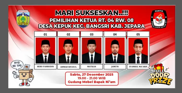 InvestigasiMabes.com | Jepara, Sabtu (27/12/2025), Warga RT 04 RW 08 Dukuh Jangglengan Desa Kepuk, menyelenggarakan rapat koordinasi tentang Pemilihan Ketua RT 04 RW 08 di laksanakan di Gudang Mebel Bapak Ni'am Dukuh Jangglengan, Rapat koordinasi tersebut dihadiri oleh Kepala Desa Kepuk (Sawi), Seksi Keamanan Lingkungan Danton Linmas Desa Kepuk ( Sugiyanto), Sesepuh Lingkungan Kyai ( Fauzi), Ketua BPD Desa Kepuk (Jurito), sesepuh tokoh agama, serta perwakilan dari unsur tokoh masyarakat RT 04 RW 08 Dukuh Jangglengan, Desa Kepuk, Kecamatan Bangsri, Kabupaten Jepara.