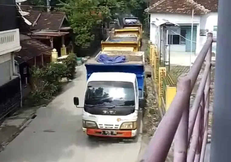 Aksi spontanitas para supir tambang ini menuntut kelonggaran trek tambang melintasi jalan pemukiman warga.