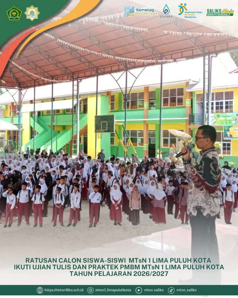 “Melalui ujian tulis dan praktik ini, madrasah dapat melihat potensi serta kemampuan dasar para calon peserta didik sehingga nantinya dapat mengikuti pembelajaran dengan baik,” ujarnya.Pelaksanaan ujian PMBM ini diikuti oleh peserta dari berbagai sekolah dasar dan madrasah ibtidaiyah di wilayah sekitar. Pihak madrasah berharap proses seleksi ini dapat berjalan dengan objektif, transparan, dan menghasilkan peserta didik yang siap berkembang bersama MTsN 1 Lima Puluh Kota.