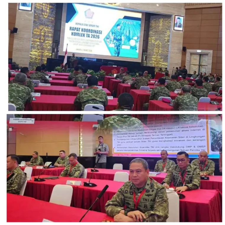 InvestigasiMabes.com | Jakarta — Dalam upaya meningkatkan kesiapan peran komunikasi dan elektronika guna menghadapi ancaman modern serta mengantisipasi dampaknya terhadap operasi TNI, Asisten Komunikasi dan Elektronika (Askomlek) Pangkormar Dr. Wahyudi, S.E., M.Tr.Hanla., M.M., M.Han., menghadiri secara langsung Rapat Koordinasi (Rakor) Komlek TNI Tahun 2026 yang digelar di Aula Gatot Soebroto Mabes TNI, Cilangkap, Jakarta Timur.