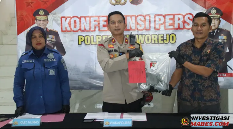 Investigasimabes.com l Purworejo – Polres Purworejo menggelar konferensi pers terkait pengungkapan kasus tindak pidana kepemilikan bahan peledak yang digunakan untuk pembuatan mercon. Kegiatan tersebut dipimpin oleh Wakapolres Purworejo Kompol Nana Edi Sugito, S.H., didampingi Kasat Reskrim AKP Dwiyono, S.H., M.H., serta Kasi Humas AKP Ida Wida Astuti, S.H., M.A.P.