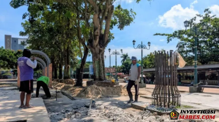 Investigasimabes.com l Rembang - Pemerintah Kabupaten Rembang melalui Dinas Pekerjaan Umum dan Penataan Ruang (DPUTARU) mulai melakukan perbaikan sementara pada sejumlah titik kerusakan di kawasan alun-alun, khususnya di sisi timur.