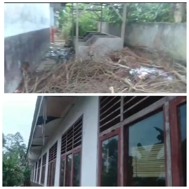 Sejumlah fasilitas sekolah tampak dalam kondisi memprihatinkan. Sampah terlihat berserakan di beberapa sudut halaman, plafon ruang kelas mengalami kerusakan, serta cat dinding yang sudah kusam dan mengelupas. Kondisi ini dinilai tidak mencerminkan lingkungan pendidikan yang layak dan nyaman bagi para siswa dalam menjalani proses belajar mengajar.
