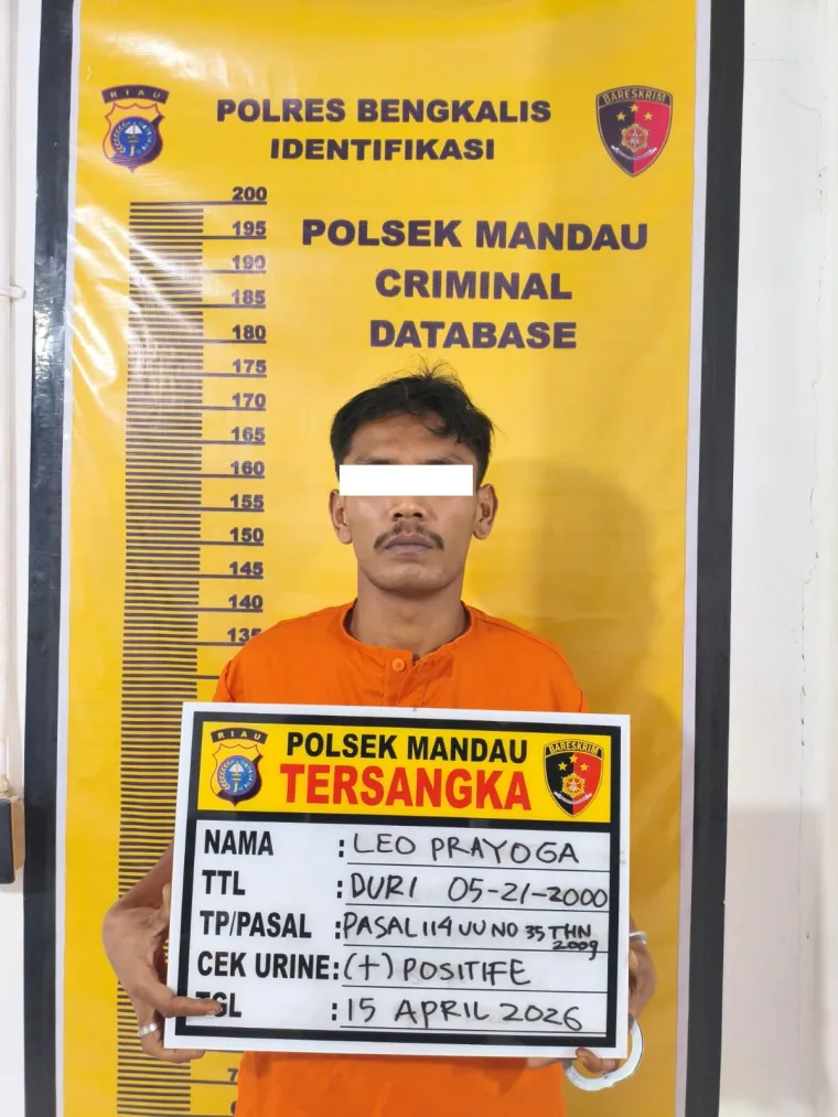 Kapolres Bengkalis AKBP Fahrian Saleh Siregar, S.I.K., M.Si melalui Kapolsek Mandau Kompol Primadona, S.I.K., M.Si menyampaikan bahwa tersangka yang diamankan berinisial L.P (26), yang sebelumnya masuk dalam daftar buronan (DPO) kasus narkotika.