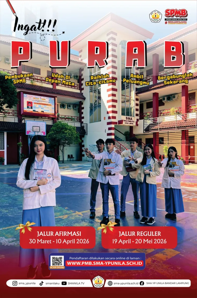 InvestigasiMabes.com | Bandarlampung - SMA YP Unila Bandar Lampung kembali membuka kesempatan bagi calon peserta didik baru melalui Sistem Penerimaan Murid Baru (SPMB) Tahun Ajaran 2026/2027.